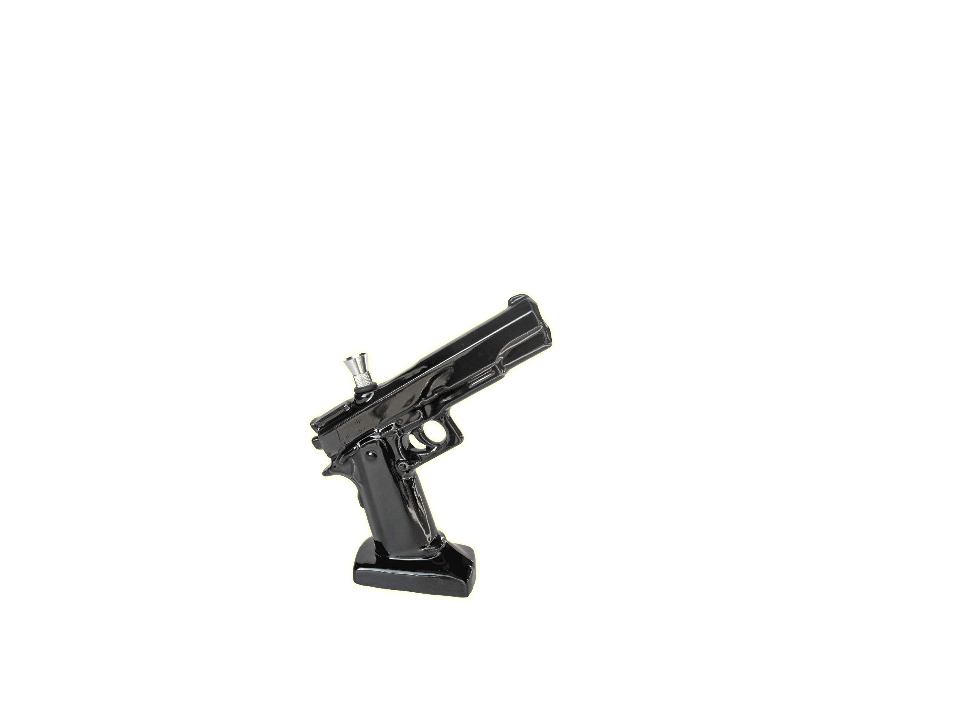 Ceramic pipe with metal stem and bowl.